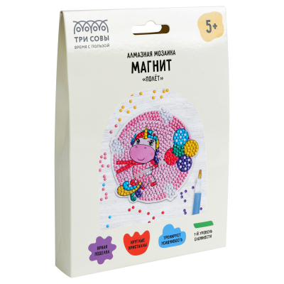 Создание магнита из алмазной мозаики «ТРИ СОВЫ» – увлекательное занятие, которое развивает мелкую моторику, усидчивость и цветовосприятие ребенка.