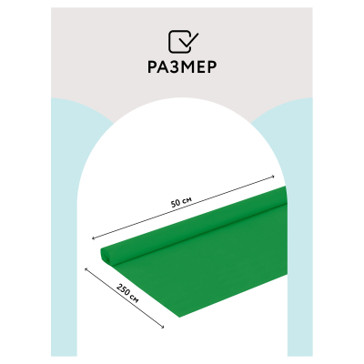 Крепированная бумага в рулоне «ТРИ СОВЫ» – отличный выбор для творчества. Полотно светло-зелёного цвета шириной 50 см и плотностью 32 г/м2 имеет длину 2,5 метра и упаковано в прозрачный пакет с европодвесом. Бумага тонкая, с мелким гофром и растяжением 60%. Товар отличается высоким качеством и не оставляет следов краски.