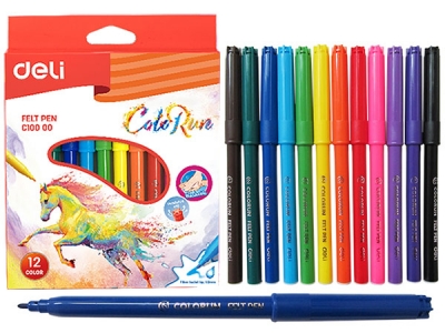 Фломастеры Deli ColoRun, 12 ярких цветов, высокое качество, смываемые чернила.