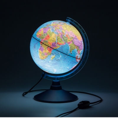 Глобус имеет подсветку, что позволяет комфортно использовать его в темное время суток. Лампочку внутри сферы при необходимости легко заменить.