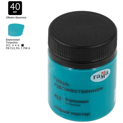 Гуашь художественная Гамма "Старый Мастер", бирюзовая, 40мл 12112040412