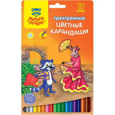 Карандаши цветные с заточенным грифелем, с эргономичной трехгранной формой корпуса. Яркие насыщенные цвета. Мягкое письмо. Карандаши легко затачиваются. Упакованы в картонную лакированную коробку со склеенным европодвесом. Для детей старше 3-х лет.