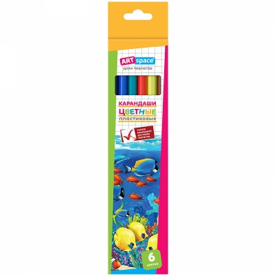 Набор цветных карандашей, ARTSpace "Подводный мир", 6 цветов, картонная коробка с европодвесом. Материал - пластик. Карандаши легко затачиваются, имеют гибкий пластиковый шестигранный корпус, яркие естественные цвета и прочный грифель. Карандаш гнется, на сломе нет острых краев.