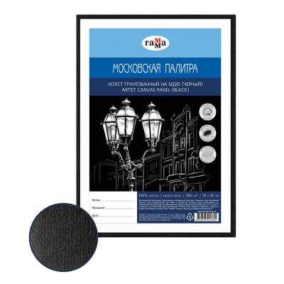 Холст на МДФ Гамма "Московская палитра", 25*35см, цвет черный, 100% хлопок, 250г/м2, мелкое зерно 081018_01