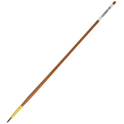 Кисть Синтетика круглая с удлиненной рукояткой, №1 — это отличная замена натуральным кистям. Отличается идеальной формой, эластичностью и гибкостью, не теряет упругости при намокании. Синтетические кисти изготавливаются из искусственных материалов: нейлона, таклон, полиэстер и имитируют натуральный ворс, например, пони, белки, колонка и других животных. Кисти с коричневым/бежевым ворсом — как правило, имеют среднюю жесткость, их чаще выбирают для акриловых, масляных, гуашевых и темперных красок. Работать акварелью тоже можно, но за счет толщины ворса не столь удобно. Кисти с черным ворсом — имеют мягкий ворс и предназначены для акварели, темперы или гуаши. Использовать их с масляными и акриловыми красками не стоит. Кисть с белым ворсом — как правило, самый жесткий вариант. Часто имитирует щетину или козлиный ворс. Хороши для масла и акрила.