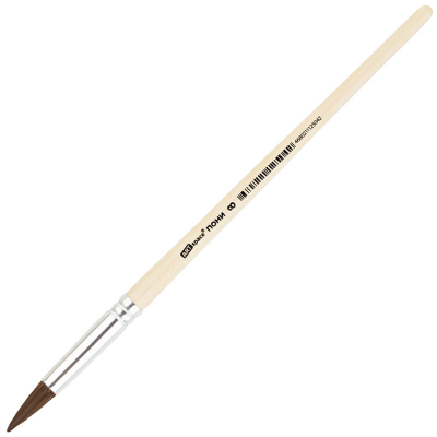 Художественные кисти ArtSpace изготовлены из волоса пони. Он несколько толще, чем у белки, расстояние между волосками больше, поэтому воду такая кисточка набирает меньше, чем из белки или колонка. Приобретают форму конуса, не слишком упруги. Кисть круглой формы с короткой ручкой из дерева идеальна для начинающих художников, поэтому её часто используют в детских образовательных учреждениях.