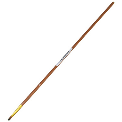 Кисть синтетика плоская №3 с тонкой удлиненной ручкой — это отличная замена натуральным кистям. Отличается идеальной формой, эластичностью и гибкостью, не теряет упругости при намокании. Синтетические кисти изготавливаются из искусственных материалов: нейлона, таклон, полиэстер и имитируют натуральный ворс, например, пони, белки, колонка и других животных. Кисти с коричневым/бежевым ворсом — как правило, имеют среднюю жесткость, их чаще выбирают для акриловых, масляных, гуашевых и темперных красок. Работать акварелью тоже можно, но за счет толщины ворса не столь удобно. Кисти с черным ворсом — имеют мягкий ворс и предназначены для акварели, темперы или гуаши. Использовать их с масляными и акриловыми красками не стоит. Кисть с белым ворсом — как правило, самый жесткий вариант. Часто имитирует щетину или козлиный ворс. Хороши для масла и акрила.