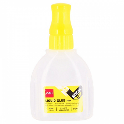 Клей Deli полимерный жидкий 50 мл с пластиковой кистью-аппликатором для склеивания бумаги и картона.