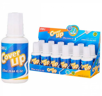 Корректирующая жидкость Deli с кисточкой, 20 мл, быстросохнущая, нетоксичная, не просвечивает, удобна в использовании.