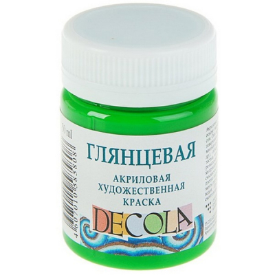 Акриловая художественная краска DECOLA, глянцевая, зеленая светлая, 50 мл, предназначена для декоративно-прикладного творчества, создает эффект глянца, отлично ложится на бумагу, ватман, картон, пластик, металл и пр.