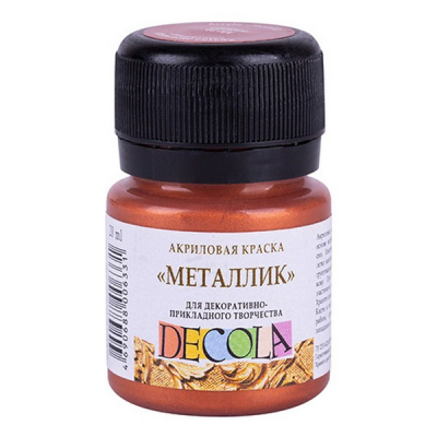 Краска акриловая DECOLA, медь, металлик, 20 мл, предназначена для декоративно-прикладного творчества, создает эффект металлического отлива, отлично ложится на бумагу, ватман, картон, пластик, металл и пр.