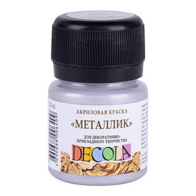 Краска акриловая DECOLA, серебро, металлик, 20 мл, предназначена для декоративно-прикладного творчества, создает эффект металлического отлива, отлично ложится на бумагу, ватман, картон, пластик, металл и пр.