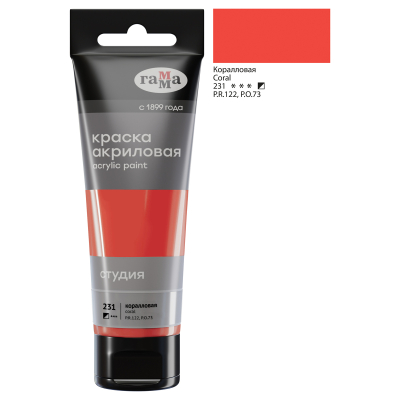 Акриловая краска ГАММА «Студия» предназначена для художественно-живописных и декоративно-прикладных работ. Цвет — коралловый. Объём пластиковой тубы — 75 мл.