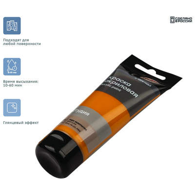 Новая акриловая краска «Студия» цвета золотистая охра предназначена для художественно-живописных и декоративно-прикладных работ. Главные отличия: насыщенный цвет, густая консистенция, высокая адгезия, прочность красочного слоя. После высыхания краска становится глянцевой, практически не темнеет, специальная добавка позволяет максимально раскрыть красоту цвета. Художественный акрил прекрасно разносится, подходит для бумаги, картона, грунтованного холста, дерева, стекла, кожи, ткани. Время высыхания: от 10 минут до 1 часа в зависимости от толщины слоя. Прозрачный корпус тубы позволяет увидеть цвет краски, а удобная крышка флип-топ предотвращает высыхание. Объём тубы — 75 мл.