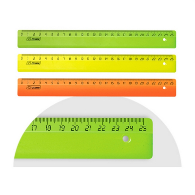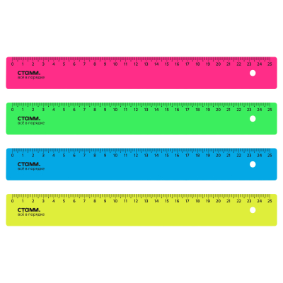 Линейка СТАММ Neon – отличный помощник для создания ровных линий. Размер товара – 25 см, ширина – 30 мм. Изделие имеет прочный и лёгкий корпус, безопасные закруглённые края и чёткую контрастную миллиметровую шкалу. Товар представлен в ярких флуоресцентных цветах.