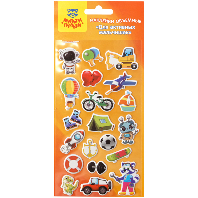 Наклейки объемные Мульти-Пульти "Для активных мальчишек", 10*22см, 20 наклеек, инд. уп., европодвес, PS_29312