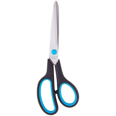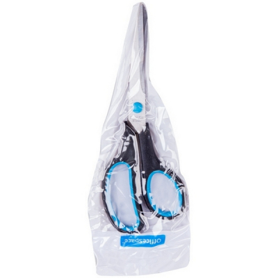 Ножницы OfficeSpace 21,5см, эргономичные ручки, черные с синими вставками, ПВХ чехол с европодвесом 264904