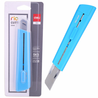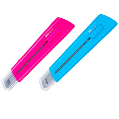 Нож канцелярский Deli Rio, 18 мм, большой, розовый со стальным лезвием и встроенной системой блокировки.