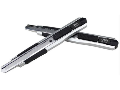 Нож канцелярский Deli малый, металлический, 9 мм, в прочном металлическом корпусе, со встроенной системой блокировки и лезвием из углеродистой стали SK5.