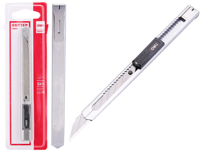 Нож канцелярский Deli малый, усиленный, 9 мм, в прочном металлическом корпусе, со встроенной системой блокировки и лезвием из углеродистой стали SK5.
