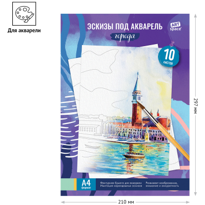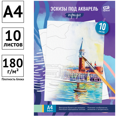Бумага с эскизом для акварели создана для всех, кто хочет освоить акварельную живопись или только попробовать в качестве эксперимента или интересного досуга. В набор входят 10 разных эскизов, выполненных от руки с имитацией карандашных линий. Специальная фактурная бумага для акварели формата А4, плотность 180 г/м2 в удобной для дальнейшего хранения папке. Подходит для рисования всеми видами водорастворимых красок, а также подойдет для рисования карандашами, ручками и фломастерами. Предназначена для непрофессионального и детского рисования.