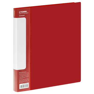 Папка на 4 кольцах «СТАММ» серии «Стандарт» предназначена для хранения перфорированных документов формата А4. Цвет папки – красный. Изготовлена из качественного полипропилена толщиной 700 мкм с текстурой «песок». Размер изделия составляет 250*305 мм. Ширина корешка 25 мм позволяет вмещать в папку до 120 листов. Кольцевой механизм, состоящий из 4 колец диаметром 16 мм, надёжно держит документы. На корешке и внутренней стороне папки имеется карман. Папка упакована в индивидуальный пакет.