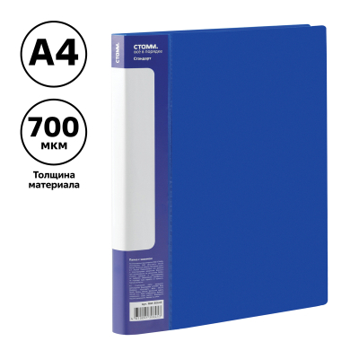 Папка с боковым зажимом «СТАММ» серии «Стандарт» предназначена для хранения бумаг формата А4. Цвет папки – синий. Папка изготовлена из качественного полипропилена толщиной 700 мкм с текстурой «песок». Тип скрепления – зажим. Размер изделия составляет 235*305 мм. Ширина корешка – 17 мм позволяет вмещать в папку до 100 листов. Боковой зажим надёжно фиксирует документы. На корешке папки имеется карман. Папка упакована в индивидуальный пакет.