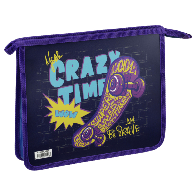 Папка для тетрадей 1 отделение, А5, ArtSpace "Crazy Time", пластик, на молнии, ПТЛ-715_58196