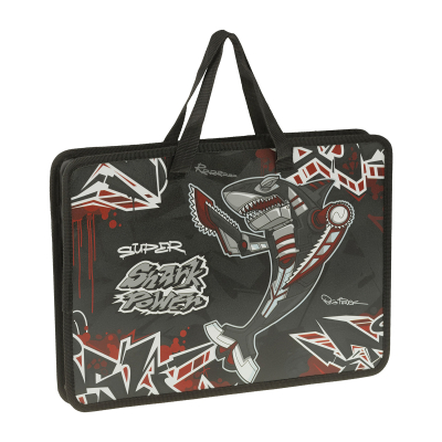Застёжка-молния расположена по верхнему краю изделия. Благодаря прочным ручкам из тесьмы папку удобно брать с собой в школу и детский сад. Изделие с акулой-роботом понравится мальчику. Папка упакована в термоусадочную плёнку.