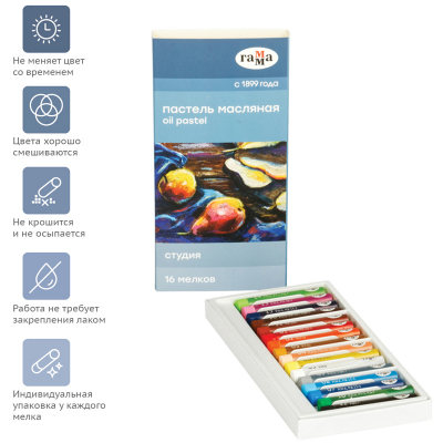 Пастель масляная Гамма "Студия", 16 цветов, картон. упаковка 160320206