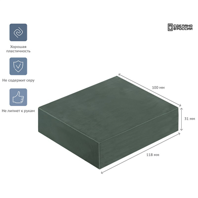 Скульптурный мягкий пластилин ГАММА серии «Студия» оливкового цвета. Прекрасно держит форму и устойчив к перепадам температуры, не оставляет пятен и не липнет к рукам. Не токсичен: не содержит серу, без выраженного химического запаха. Скульптурный пластилин ГАММА помещён в вакуумную упаковку. Вес бруска — 500 г.