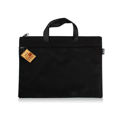 Деловая папка Deli черного цвета, из плотного текстиля, формата А4+, на молнии.