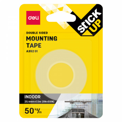 Прозрачная монтажная двусторонняя клейкая лента (скотч), шириной 25,4 мм и длиной 1,5 м, используется внутри помещений и приклеивается на пластик, стекло, металл, плитку, штукатурку, дерево, окрашенные поверхности.