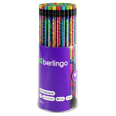 Пластиковый чернографитный карандаш с ластиком. Полосатый корпус ассорти (зеленый, синий, красный). Твердость HB. Заточенный.