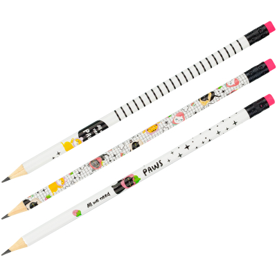 Чернографитные карандаши MESHU "Cat paws" с печатью на корпусе и цветным ластиком — аксессуары, которые не дадут заскучать на учёбе или работе. Они представлены в круглом корпусе с тремя разными дизайнами. Твёрдость грифеля — HB. Длина карандаша — 190 мм. Диаметр — 2,2 мм.