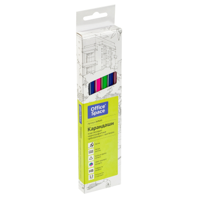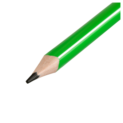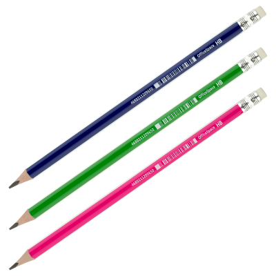 Пластиковый чернографитный карандаш с ластиком. Полосатый корпус ассорти (зеленый, синий, красный). Твердость HB. Заточенный.