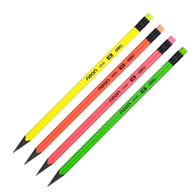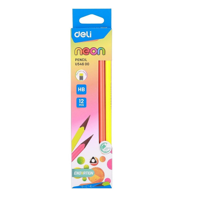 Высококачественный трехгранный пластиковый чернографитный карандаш NEON с ластиком, стандартной мягкости НВ (твердо-мягкий), — самый распространенный и популярный карандаш, предназначен для повседневного использования в быту, учебе и на работе.