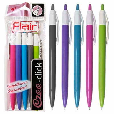 Ручка шариковая автоматическая Flair EZEE CLICK, в пластиковом корпусе. с синими чернилами на масляной основе и длиной линии письма 600-650 метров.