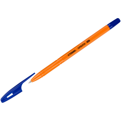 Ручка шариковая СТАММ "Орбита 100" синяя, 0,7мм, оранжевый корпус, РШ-30140