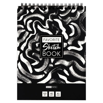 Скетчбук ArtSpace Black line. Bird состоит из 40 листов формата А5 и имеет внутренний блок черного цвета и плотностью бумаги 120 г/м. Она отлично подходит для рисования пастелью, восковыми мелками, акрилом, акварельными карандашами, гуашью и тушью белых и других светлых цветов. Скрепление «гребень» даёт возможность раскрывать скетчбук на 360 градусов.
