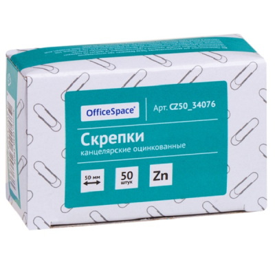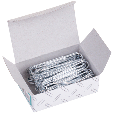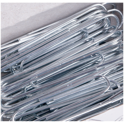 Оцинкованные канцелярские скрепки овальной формы. Отличный инструмент для работы с документами, не пачкают и не деформируют бумагу, не ржавеют, надежно скрепляют документы. Упакованы в картонную коробку по 50 шт. Длина - 50 мм.