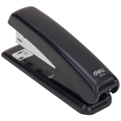 Степлер Deli половинной нагрузки вмещает до 100 скоб, пробивает до 20 листов плотностью 80 г/м².