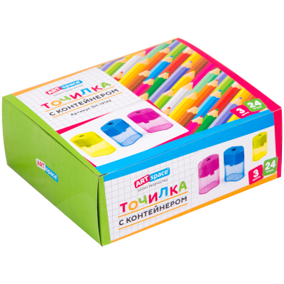 Товар, предназначен для затачивания карандашей. Точилка имеет 1 отверстие, цвета корпуса - ассорти.