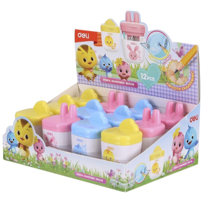 Забавная детская пластиковая точилка Deli с контейнером, для стандартных карандашей диаметром 8 мм с высококачественным прочным стальным лезвием.