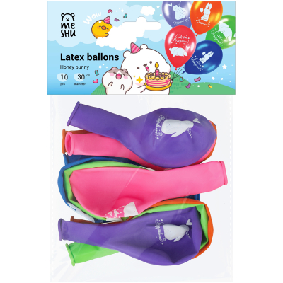 Набор воздушных шаров MESHU "Honey bunny" поможет оформить помещение для проведения тематической вечеринки, детского праздника. Изделия также подойдут в качестве дополнения к подарку имениннику. В мини-набор входят 10 шариков в пастельных оттенках с рисунками. Размер изделия — 30 см. Шарики сделаны из натурального латекса, поэтому не имеют неприятного химического запаха.
