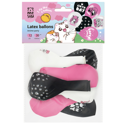 Набор упакован в яркий индивидуальный пакет с европодвесом. Дизайн упаковки с милыми персонажами создаст праздничное настроение. Шарики поставляются в ненадутом виде.