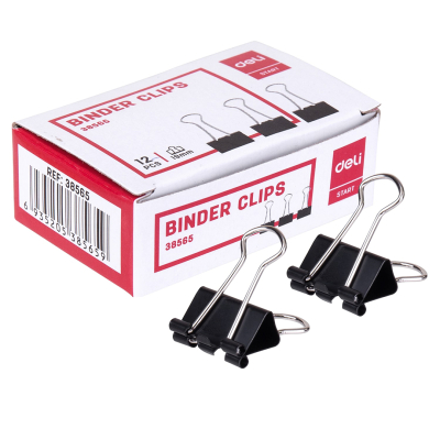 Зажим Deli черный, для скрепления большого количества листов, не деформирует бумагу.