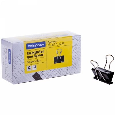 Зажимы для бумаг 32мм, OfficeSpace, 12шт., черные, картонная коробка BCLBL32_1238